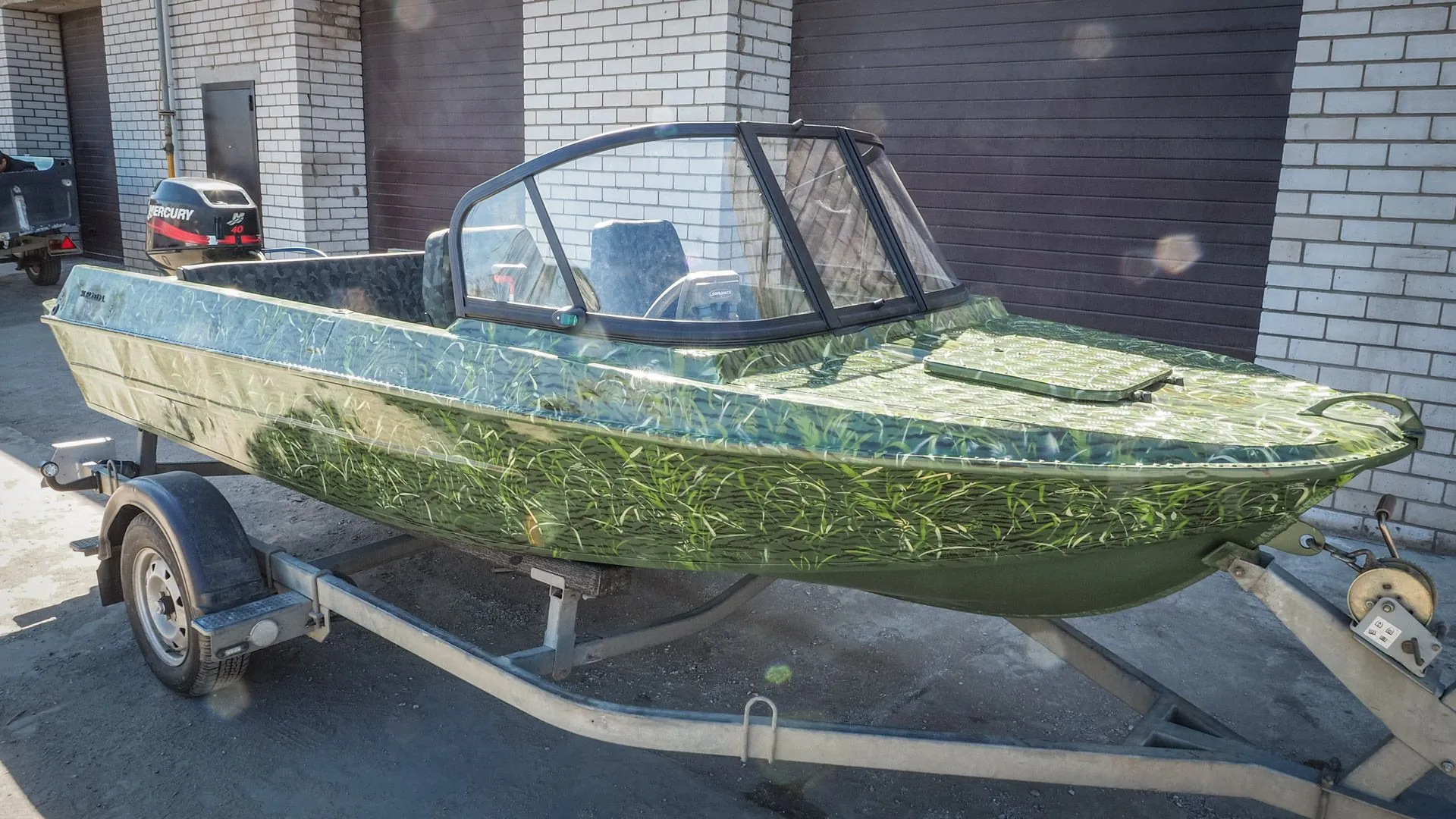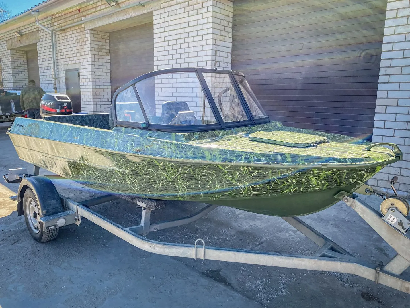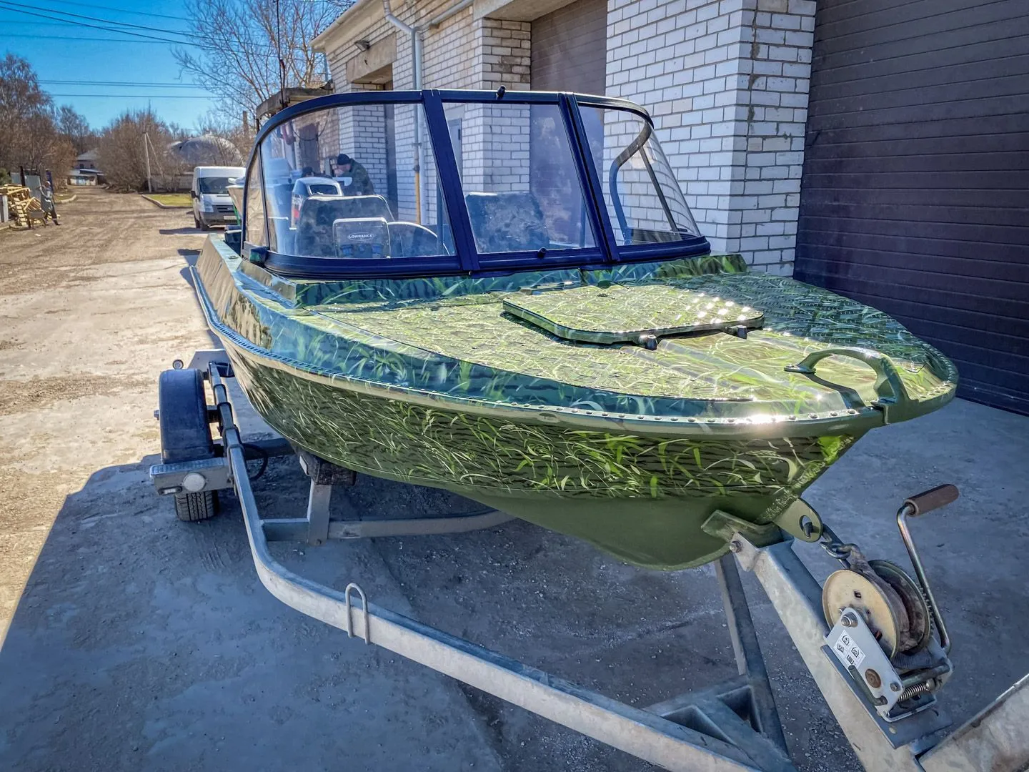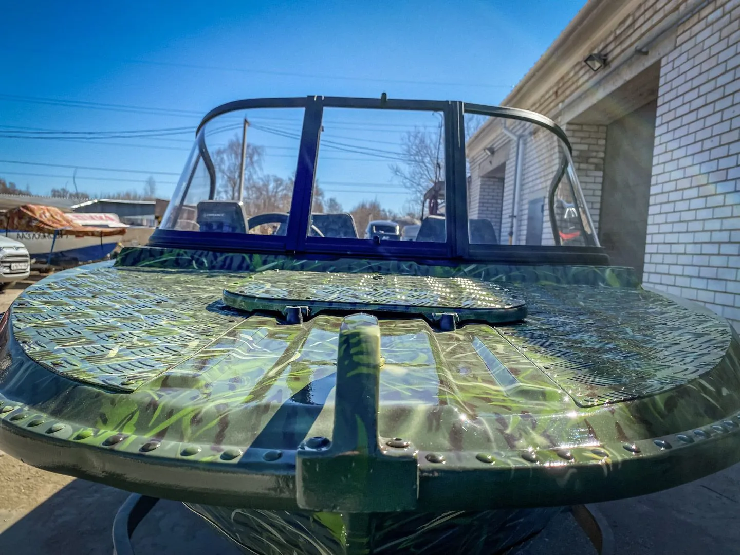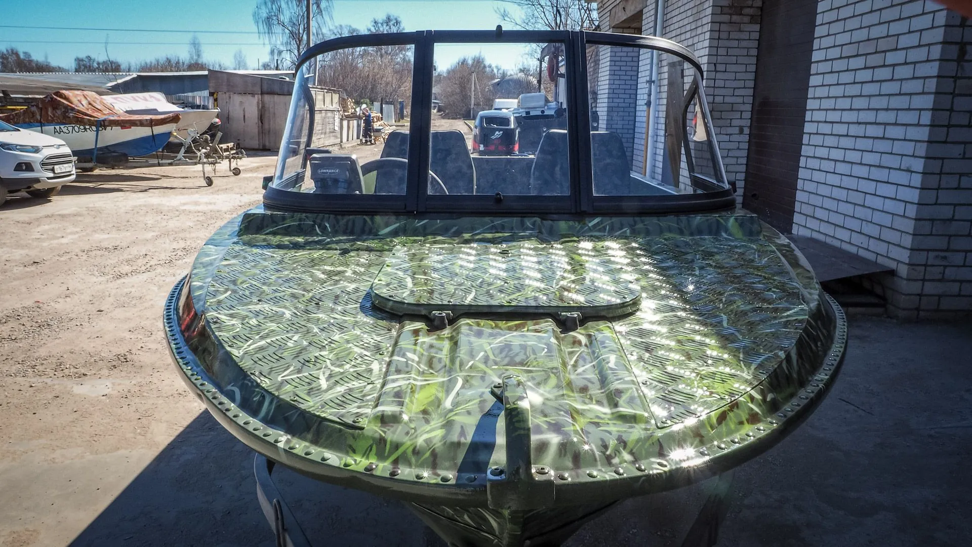 (2022) Крым Ветровое стекло Элит с боковиной Фиш, покраска в зеленый камуфляж, усиление транца