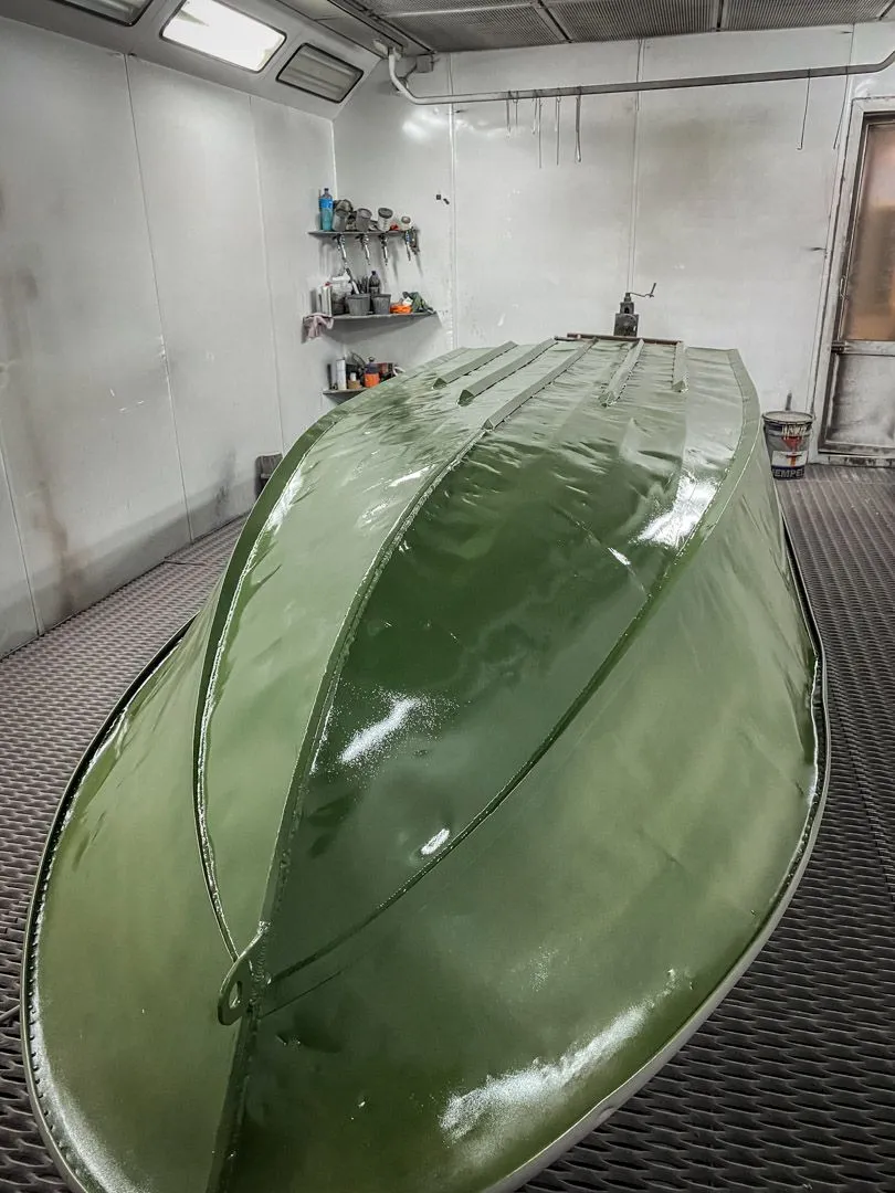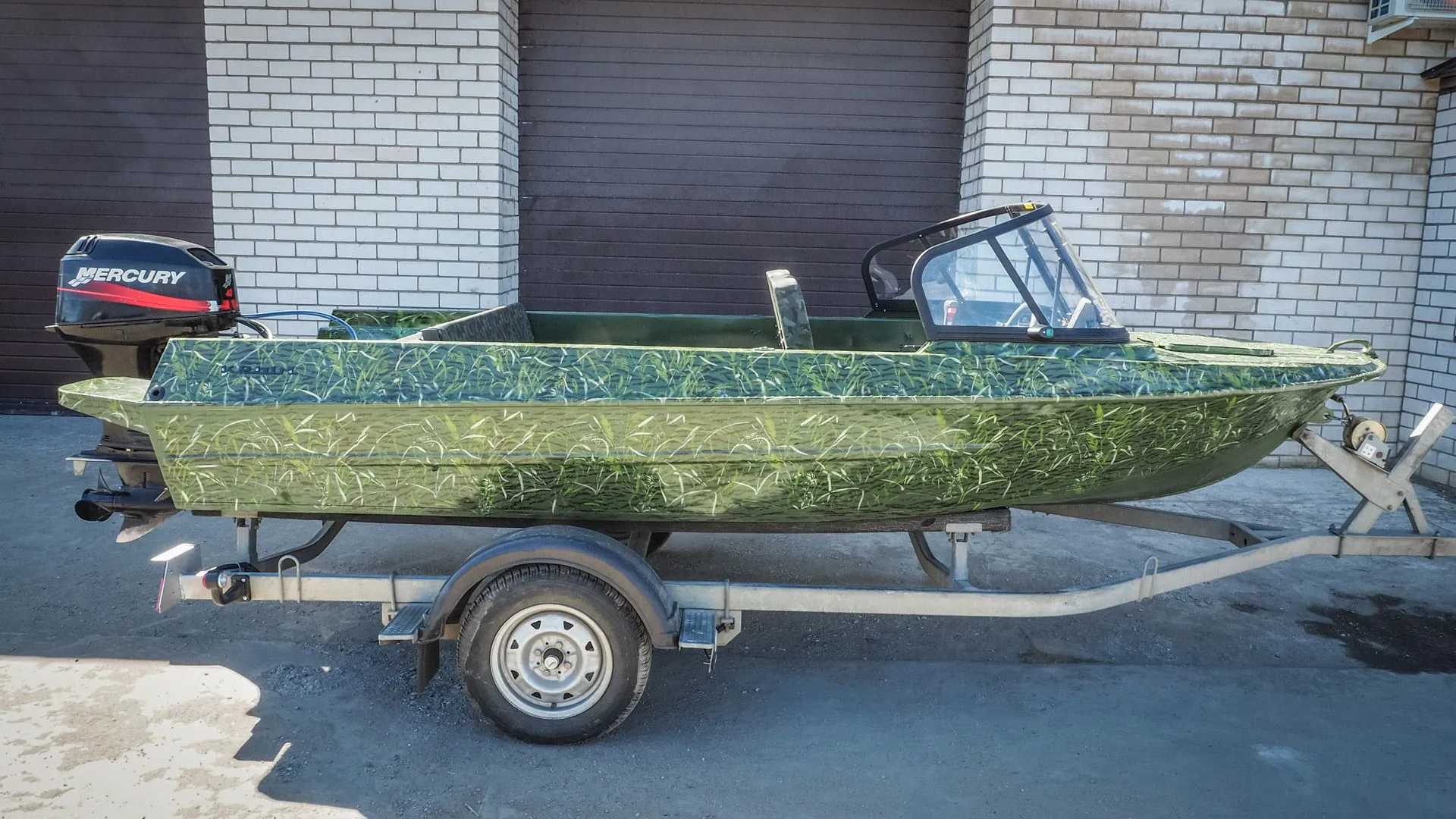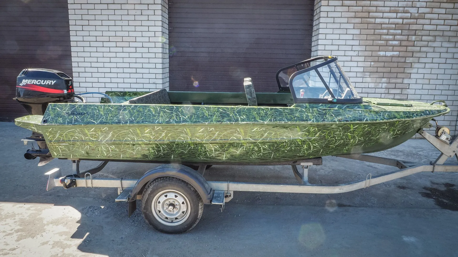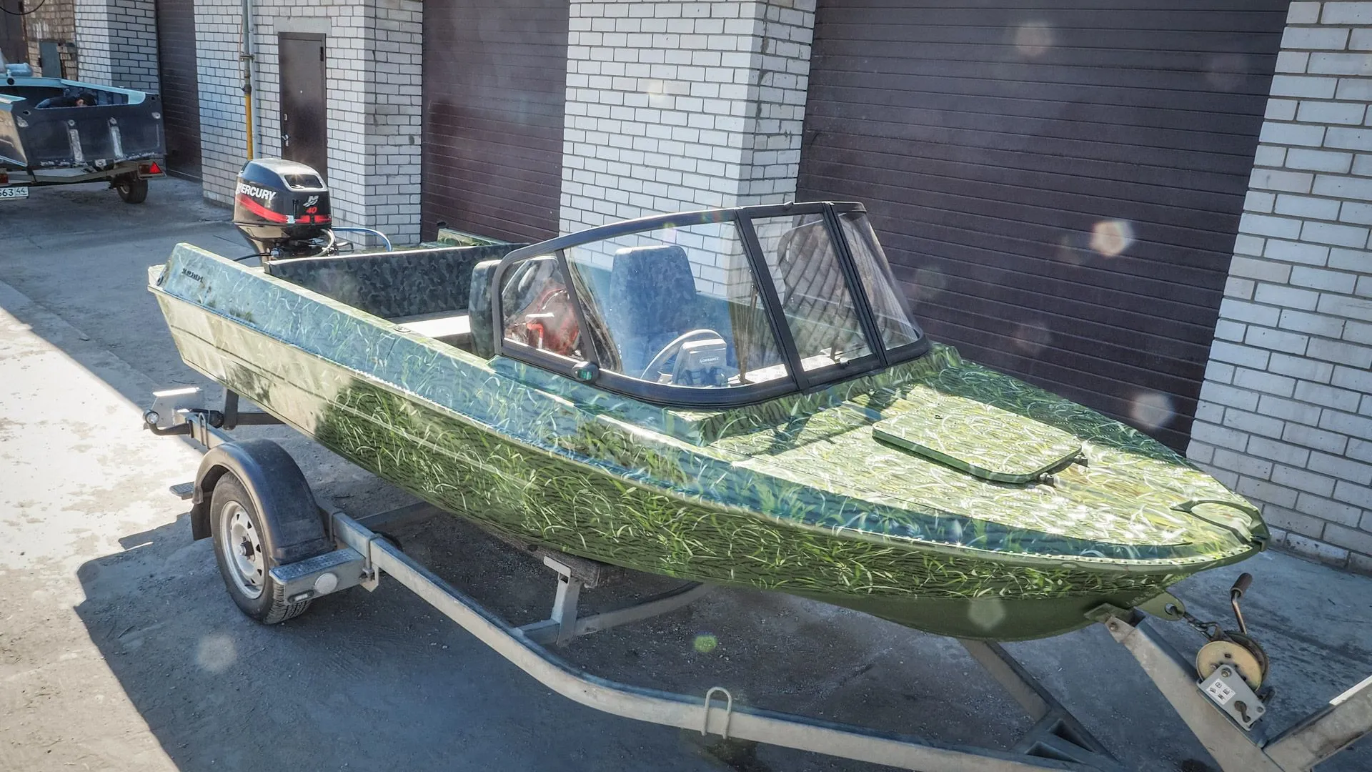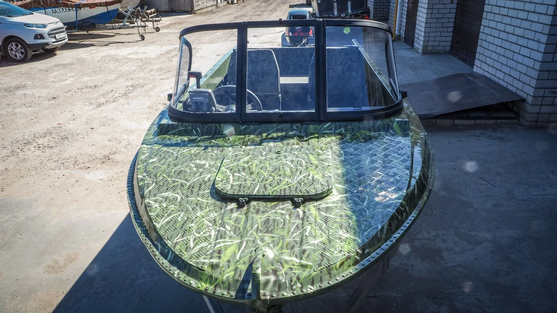 (2022) Крым Ветровое стекло Элит с боковиной Фиш, покраска в зеленый камуфляж, усиление транца