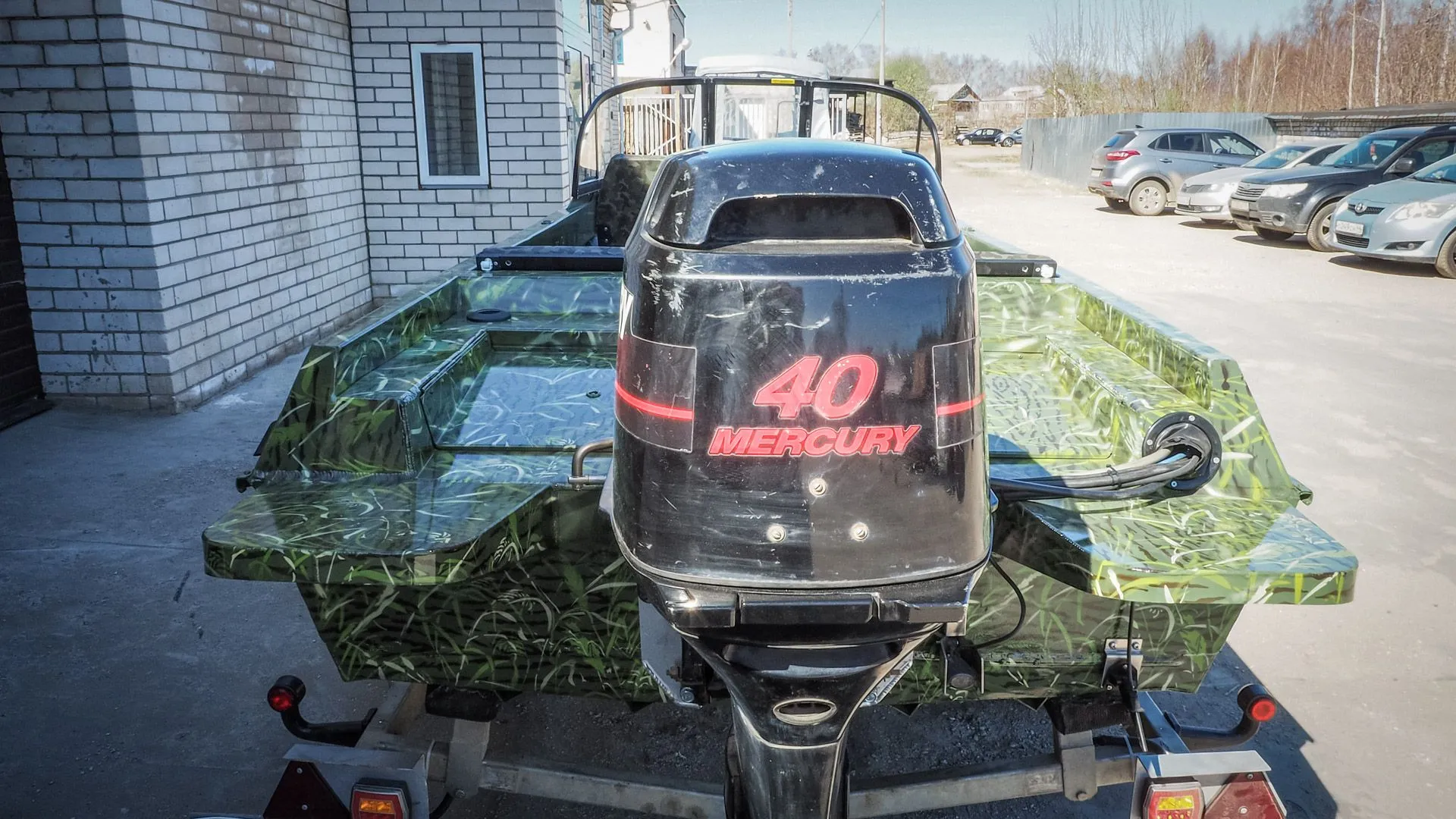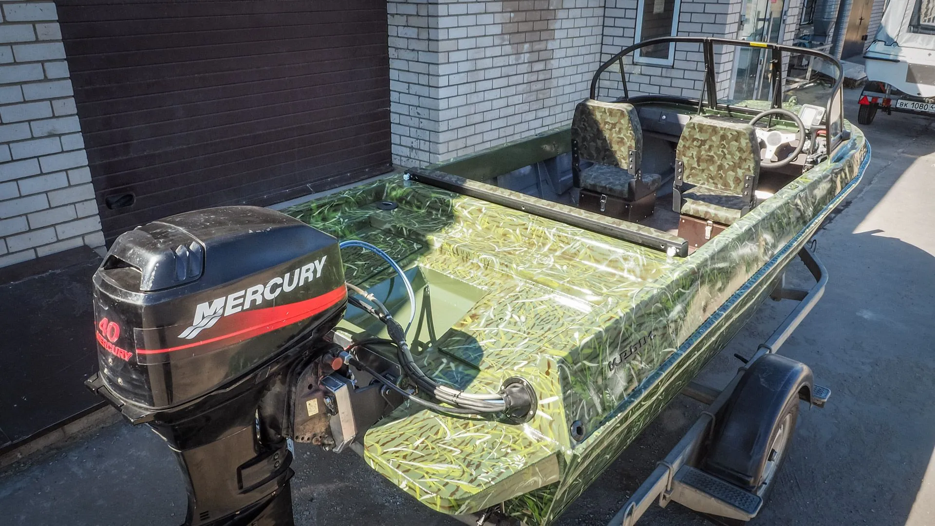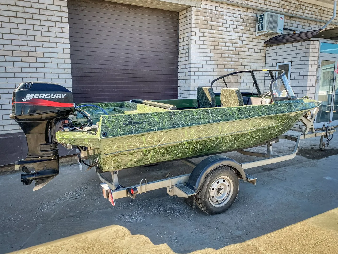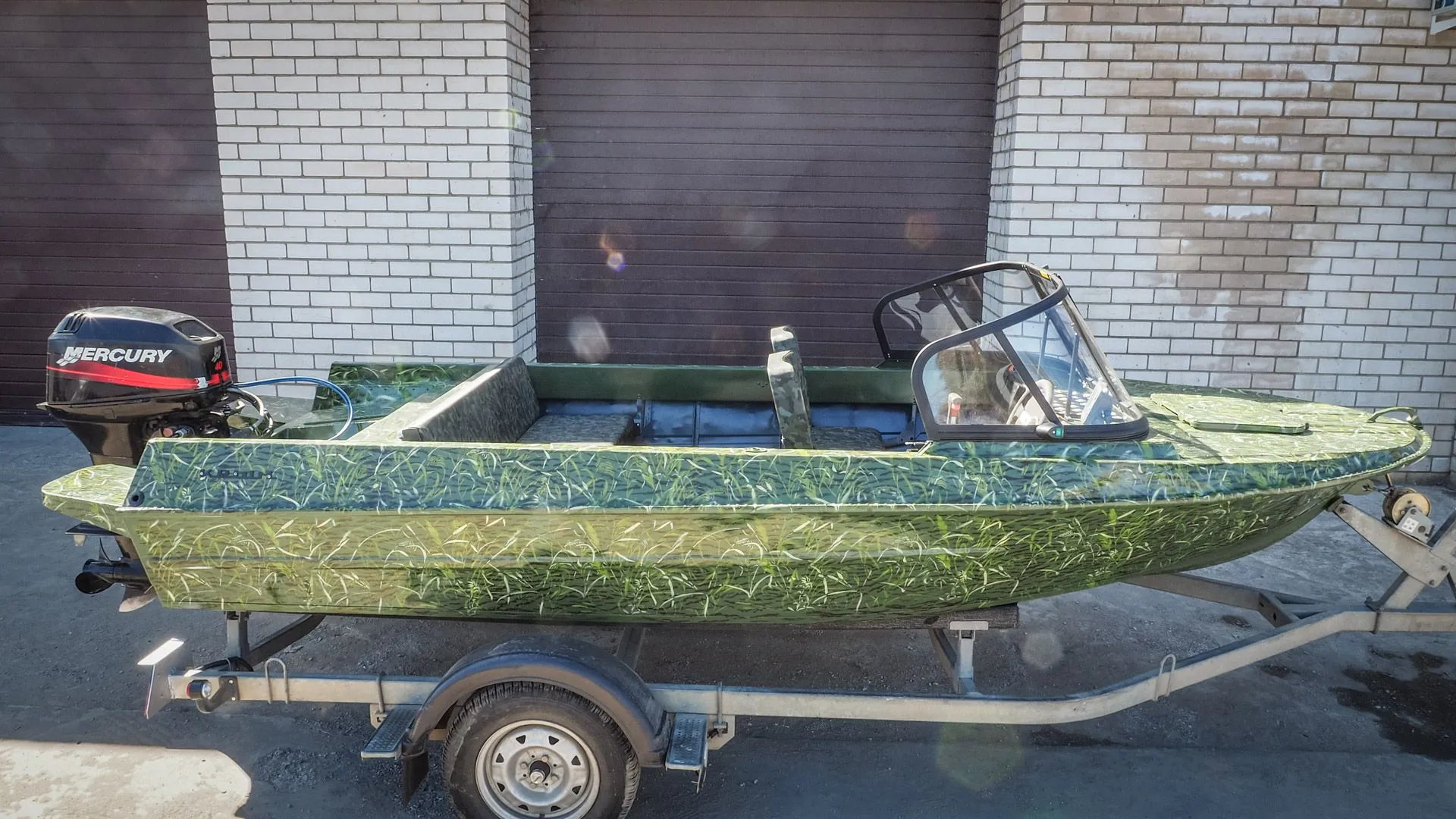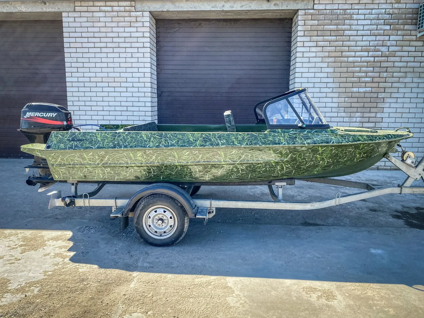 (2022) Крым Ветровое стекло Элит с боковиной Фиш, покраска в зеленый камуфляж, усиление транца