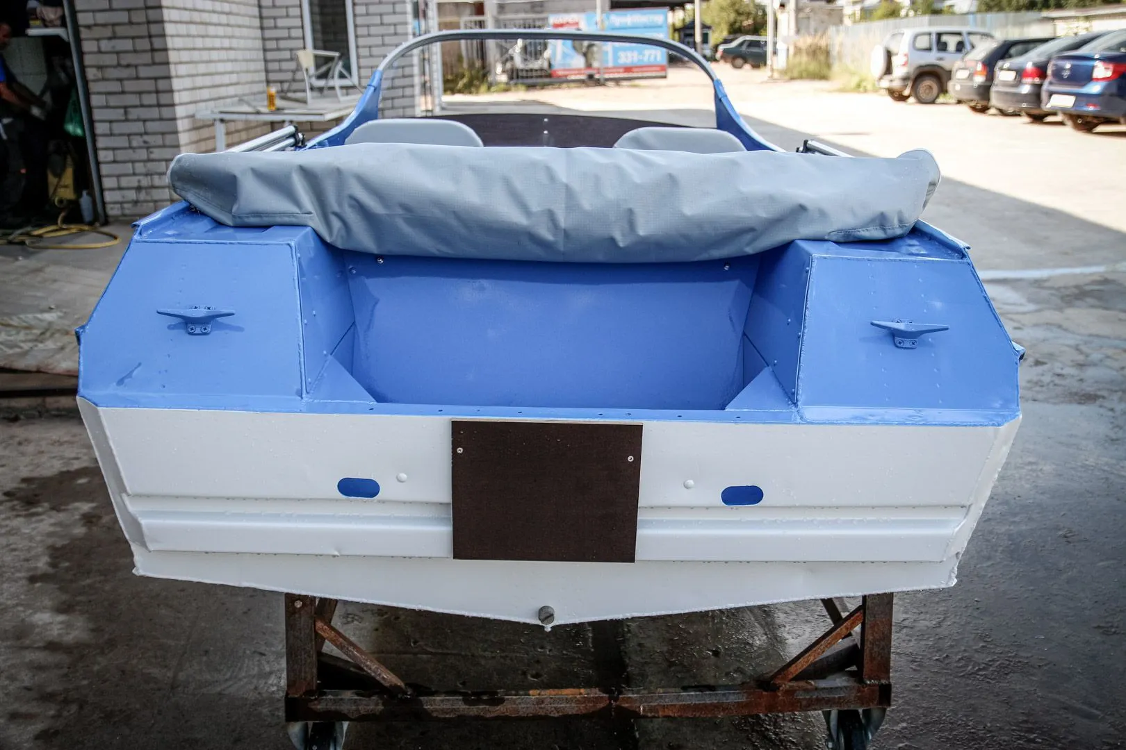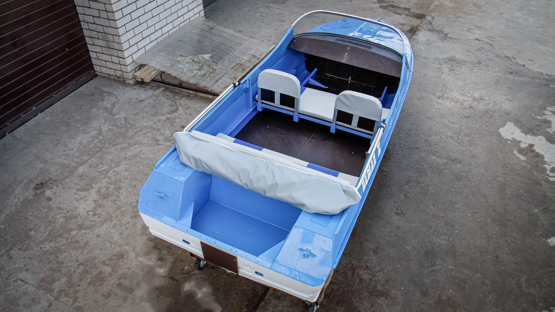Спереди расположились комфортные сиденья, в корме установлен задний диван-рундук, производства компании «Лодка 44». Накладки выполнены из паралона и кожзаменителя морского назначения. Изделие укомплектовано стойками-амортизаторами, удерживающими сиденье в открытом положении.