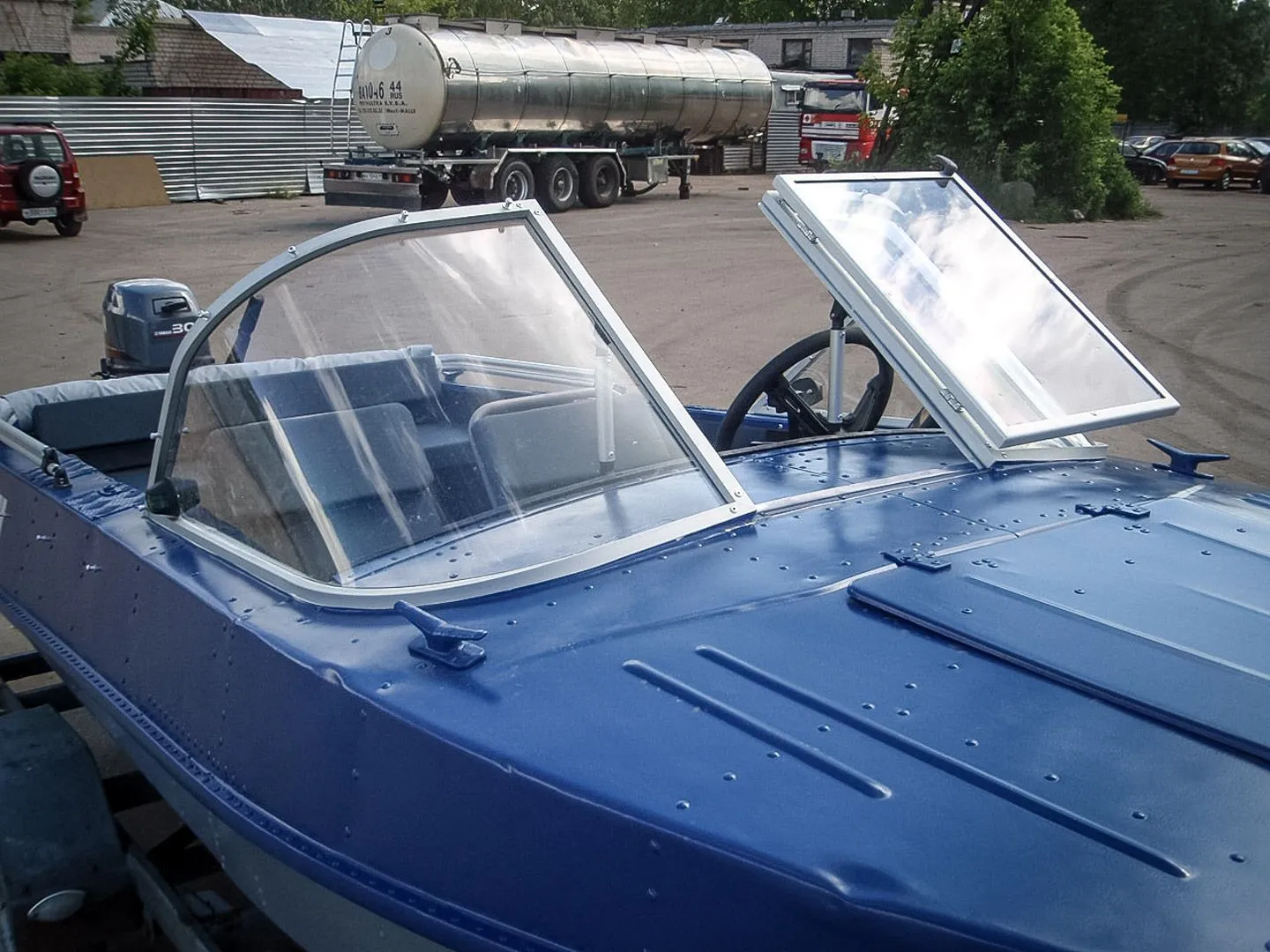 Лодка прошла все стадии ремонта, начиная с удаления обезображивающих элементов тюнинга "на причале", заканчивая установкой мотора Ямаха 30 и спуска на воду. В процессе реставрации производилось снятие краски, усиление и подъём транца, изготовление и установка стекла, настил пайол, замена блоков плавучести . Установлено рулевое и дистанционное управление. Всё остальное на фото. Если у Вас возникло желание преобразить Вашу лодку в нечто подобное, обращайтесь в компанию Lodka 44, и мы обязательно Вам поможем.