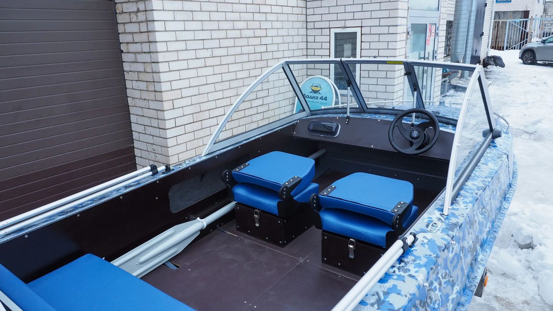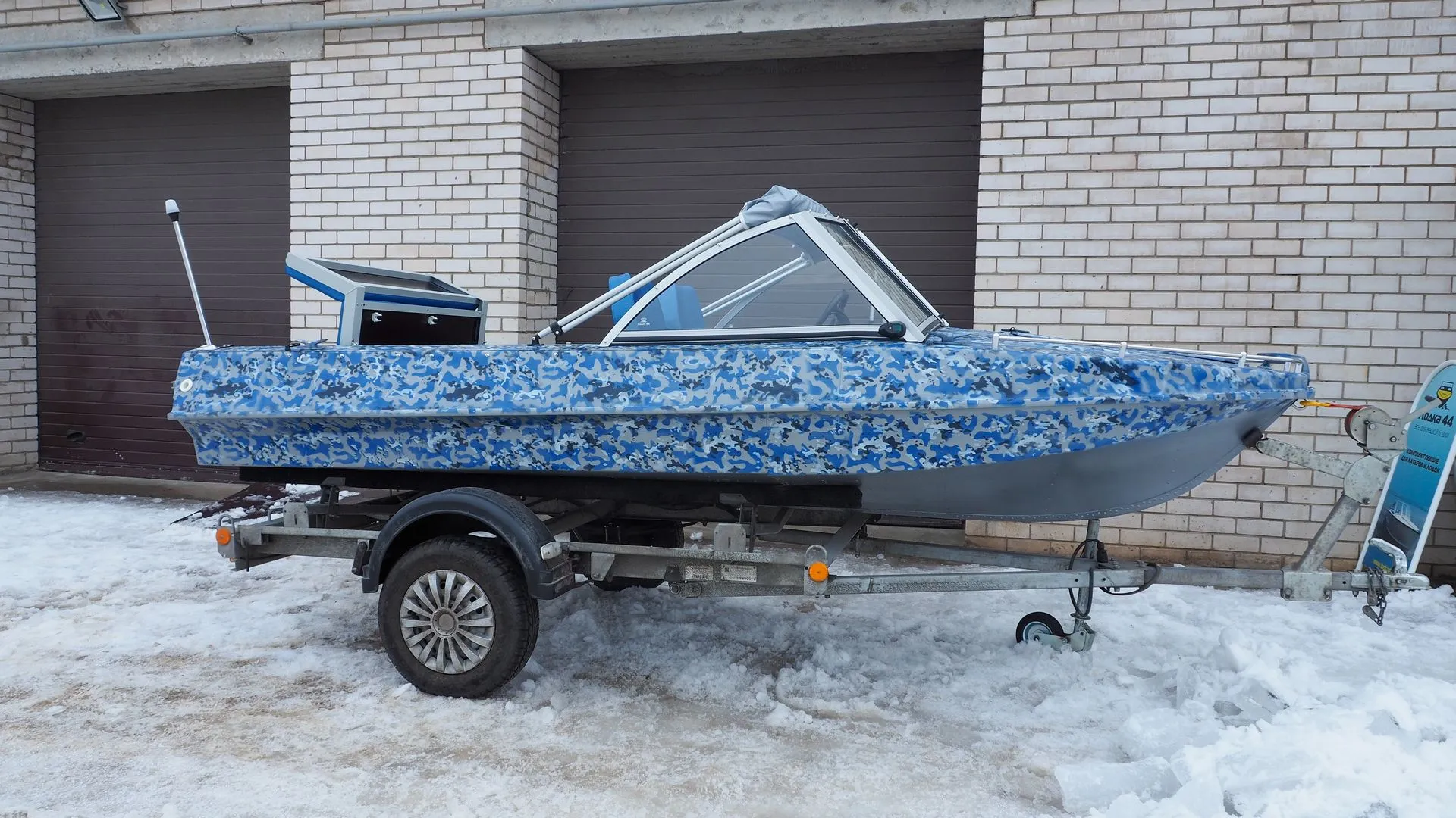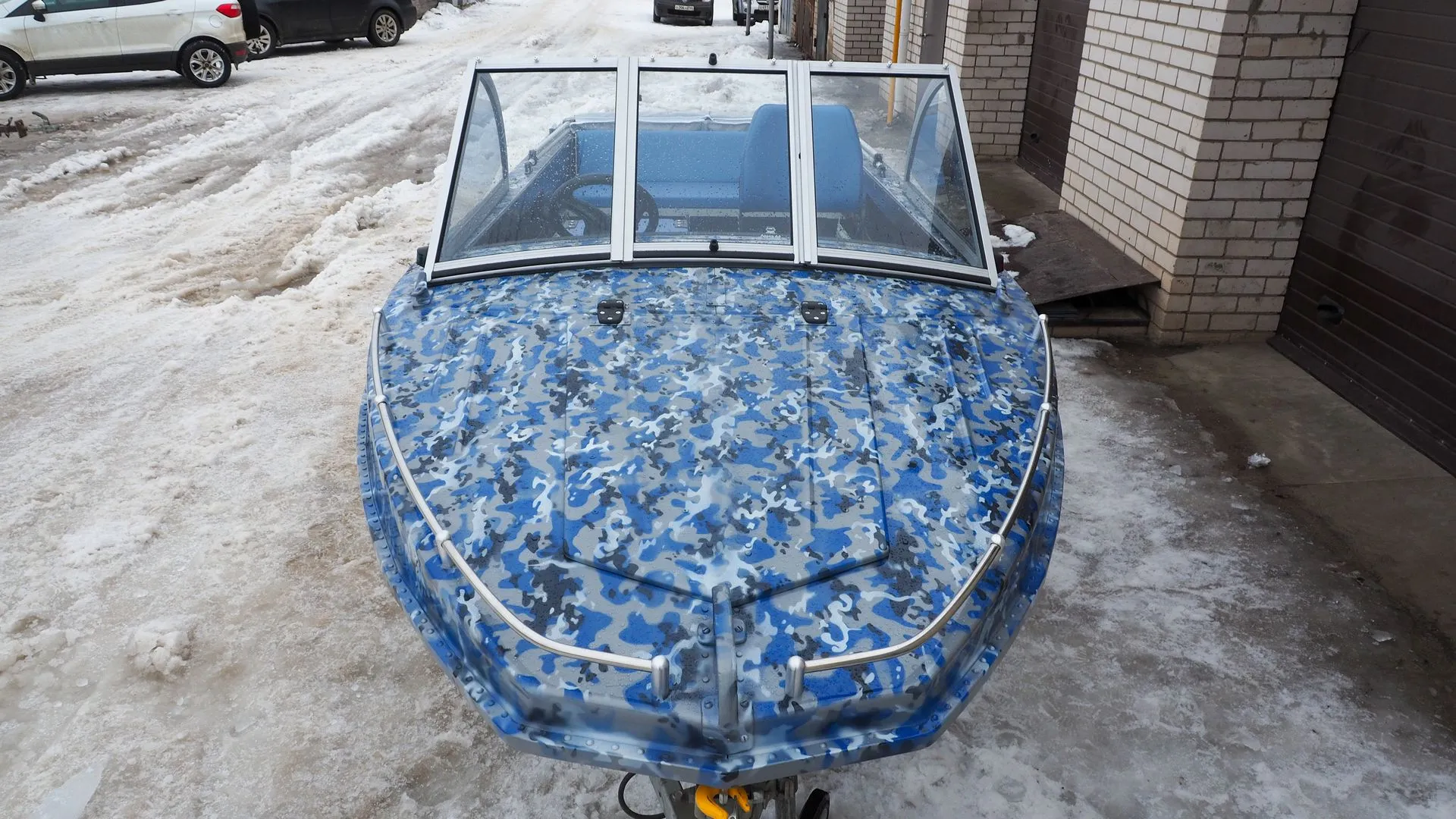 (2022) Обь М Ветровое стекло Премиум с боковиной Классик, тент Транспортировочный, покраска в синий камуфляж