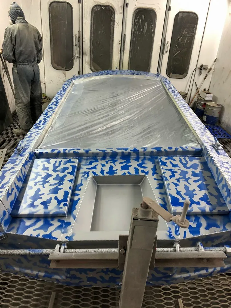 После покраски, мы дожидаемся полного высыхания лакокрасочного покрытия и перемещаем лодку на сборочный участок, где на неё будет устанавливаться различное оборудование и фурнитура.