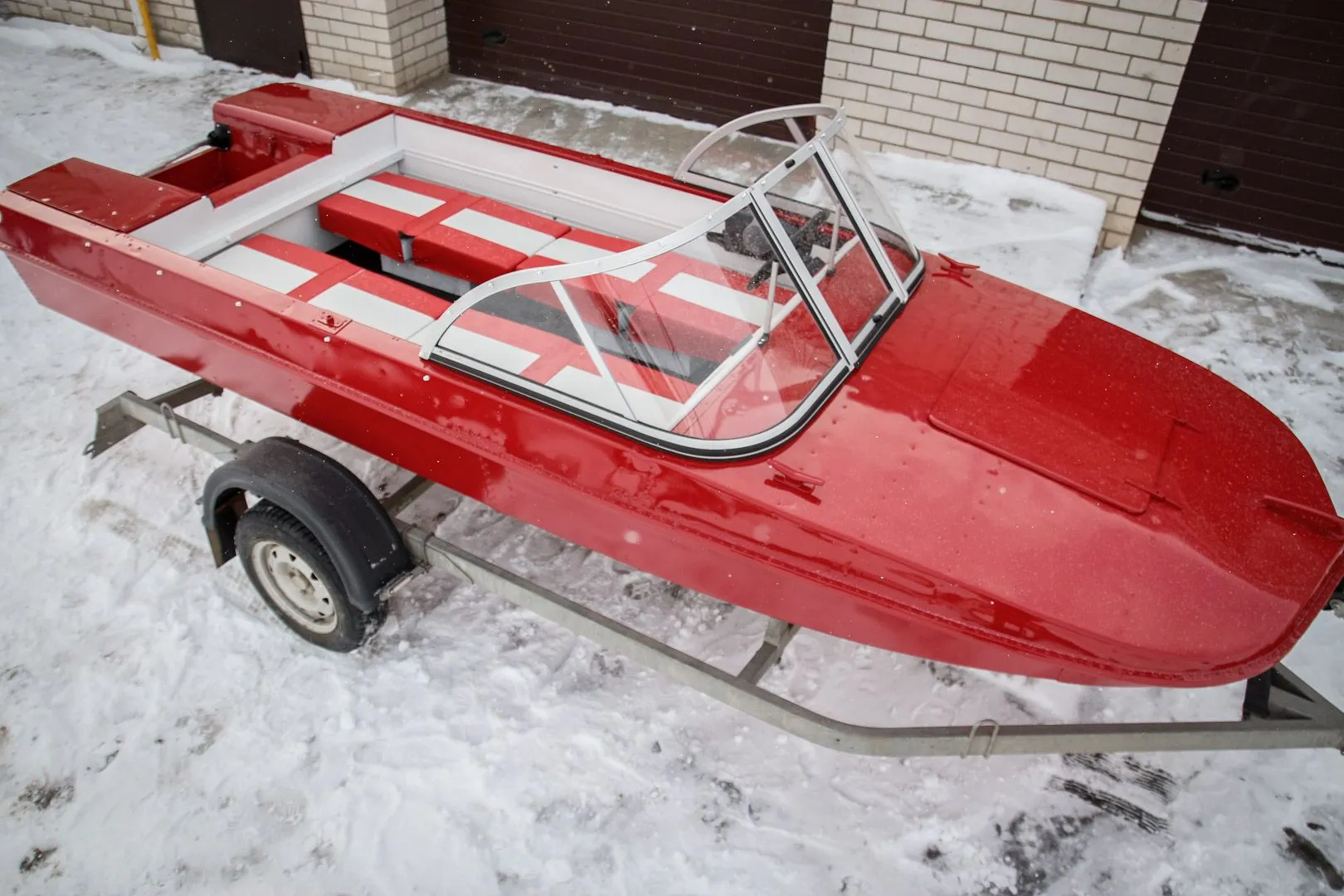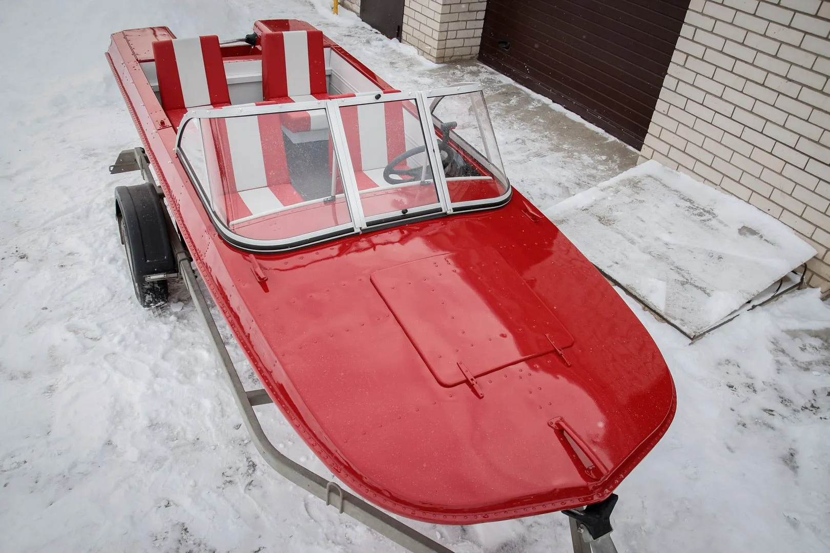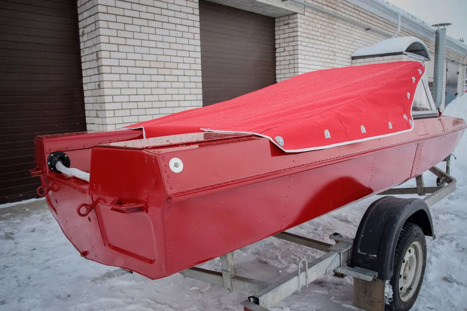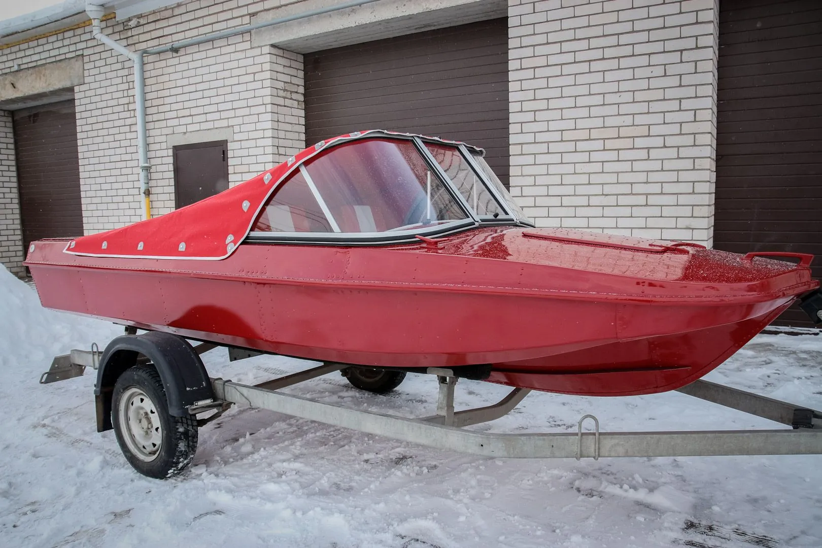 (2018) Обь 3 Ветровое стекло Элит с боковиной Классик, тент Стояночный, покраска в Красный