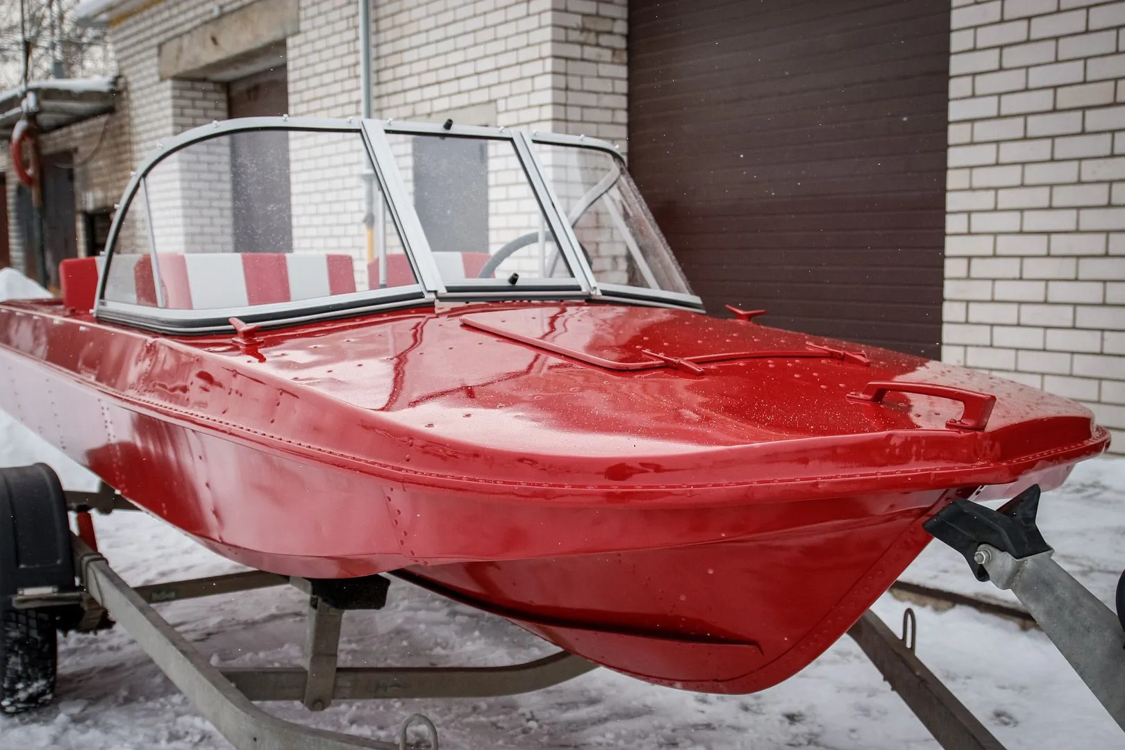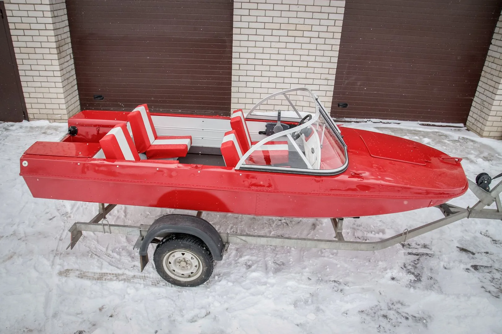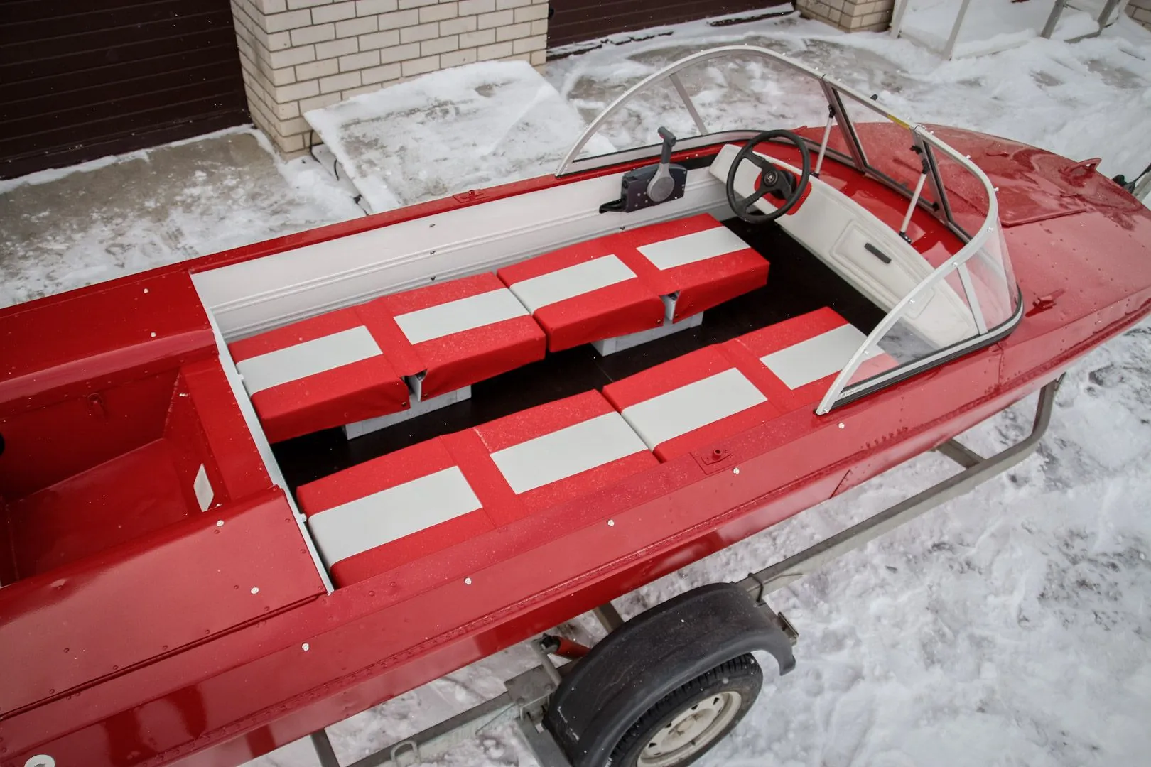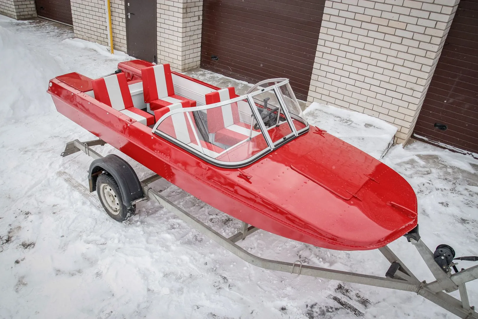 (2018) Обь 3 Ветровое стекло Элит с боковиной Классик, тент Стояночный, покраска в Красный
