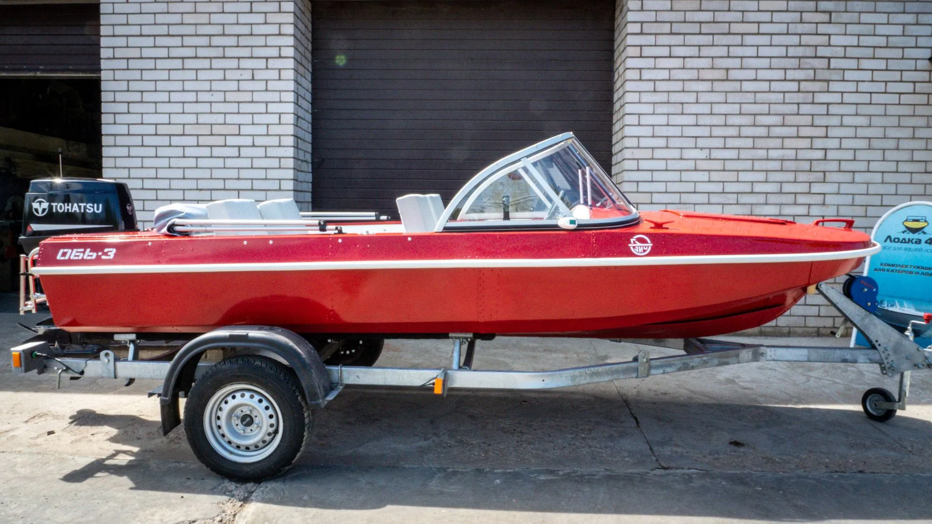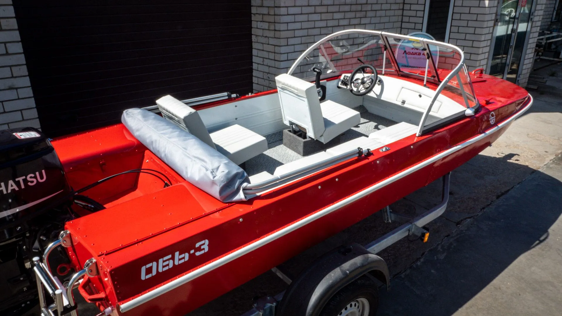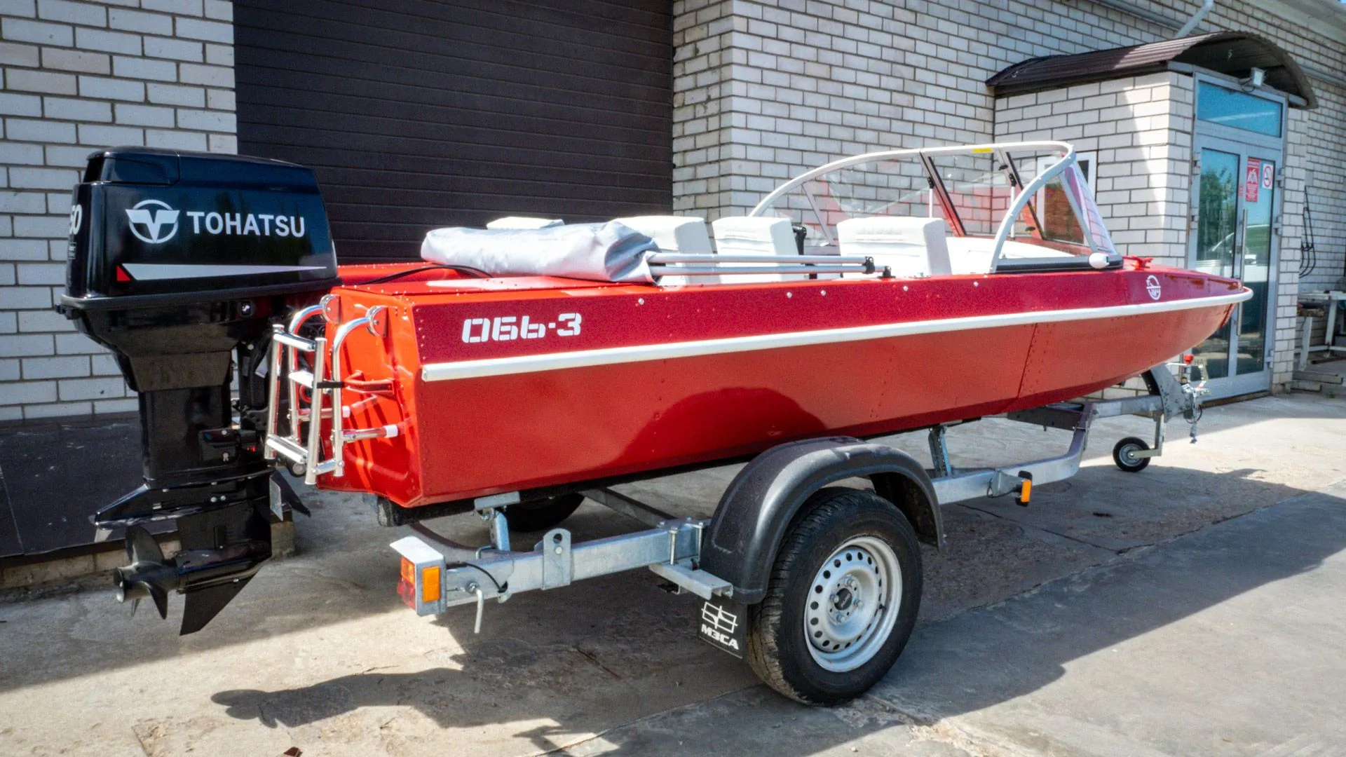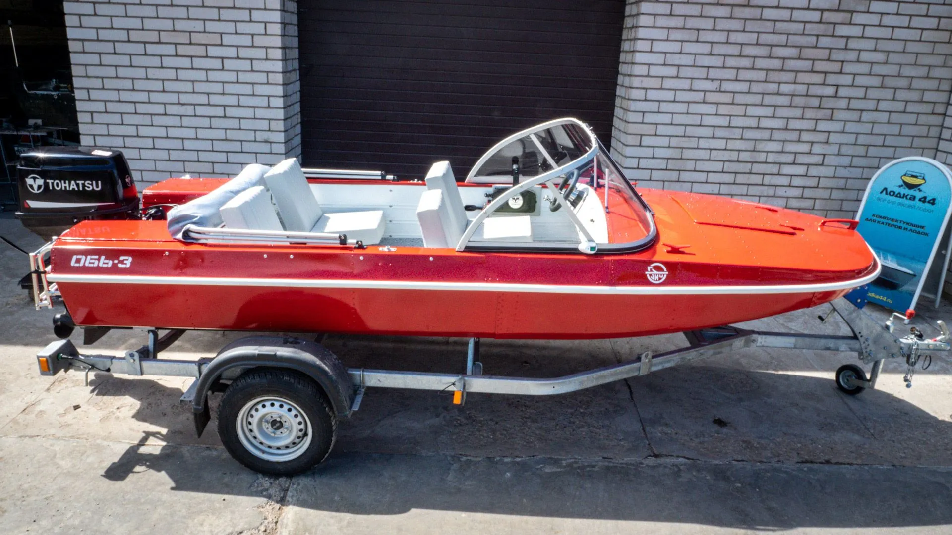 (2021) Обь 3 Ветровое стекло Элит с боковиной Классик, тент Ходовой, покраска в красный цвет