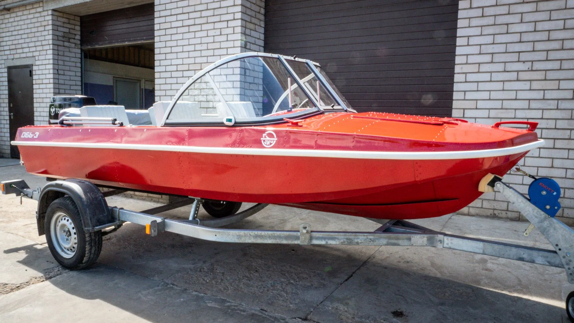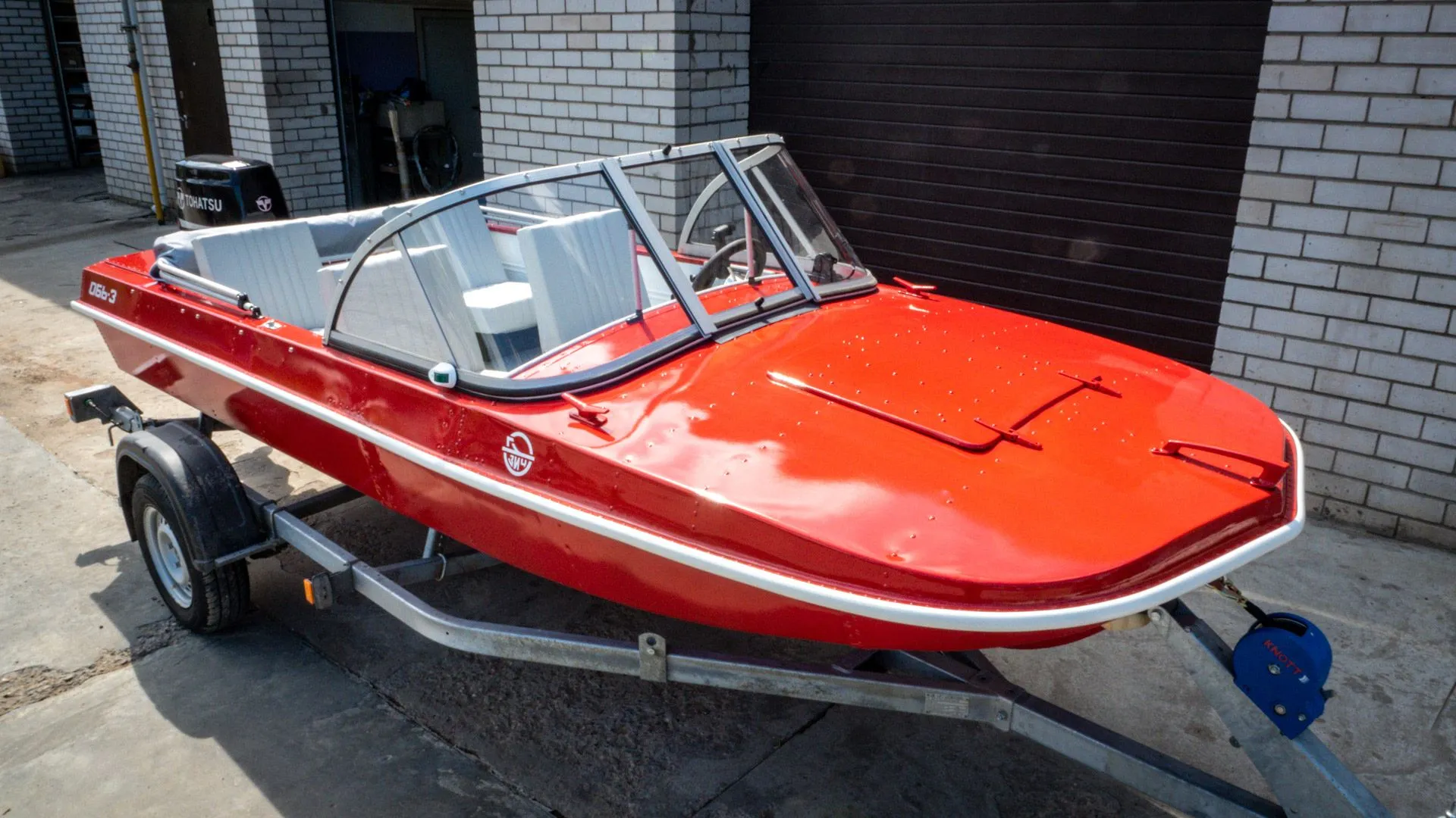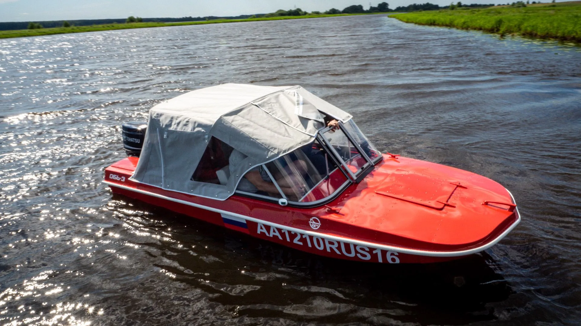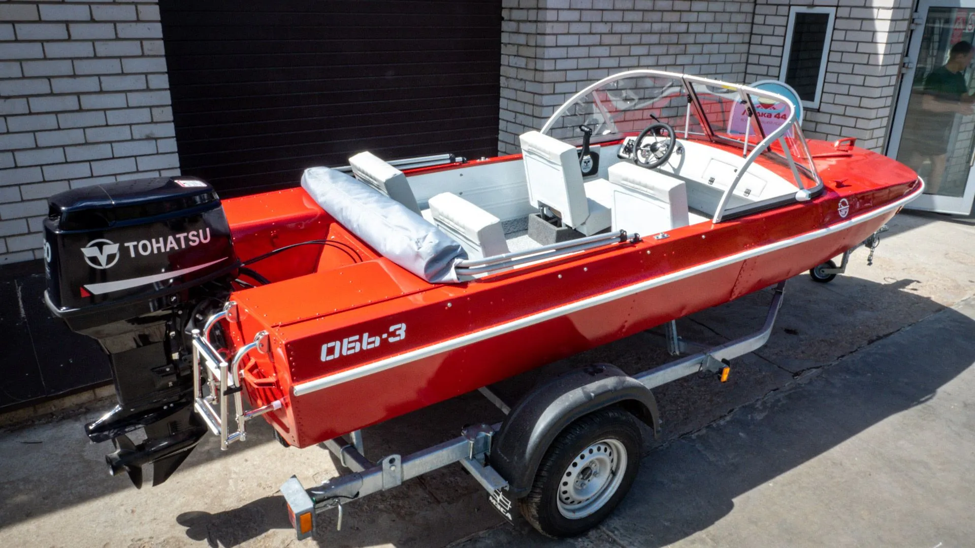 (2021) Обь 3 Ветровое стекло Элит с боковиной Классик, тент Ходовой, покраска в красный цвет