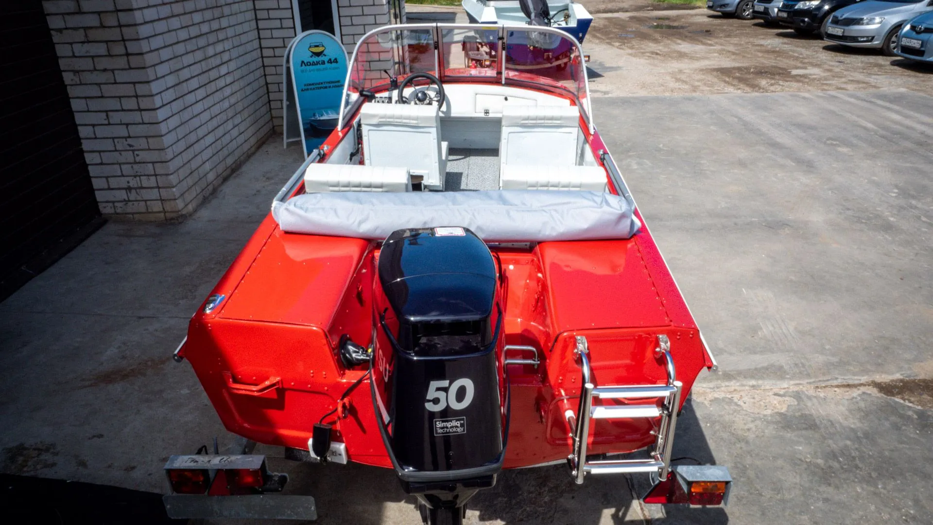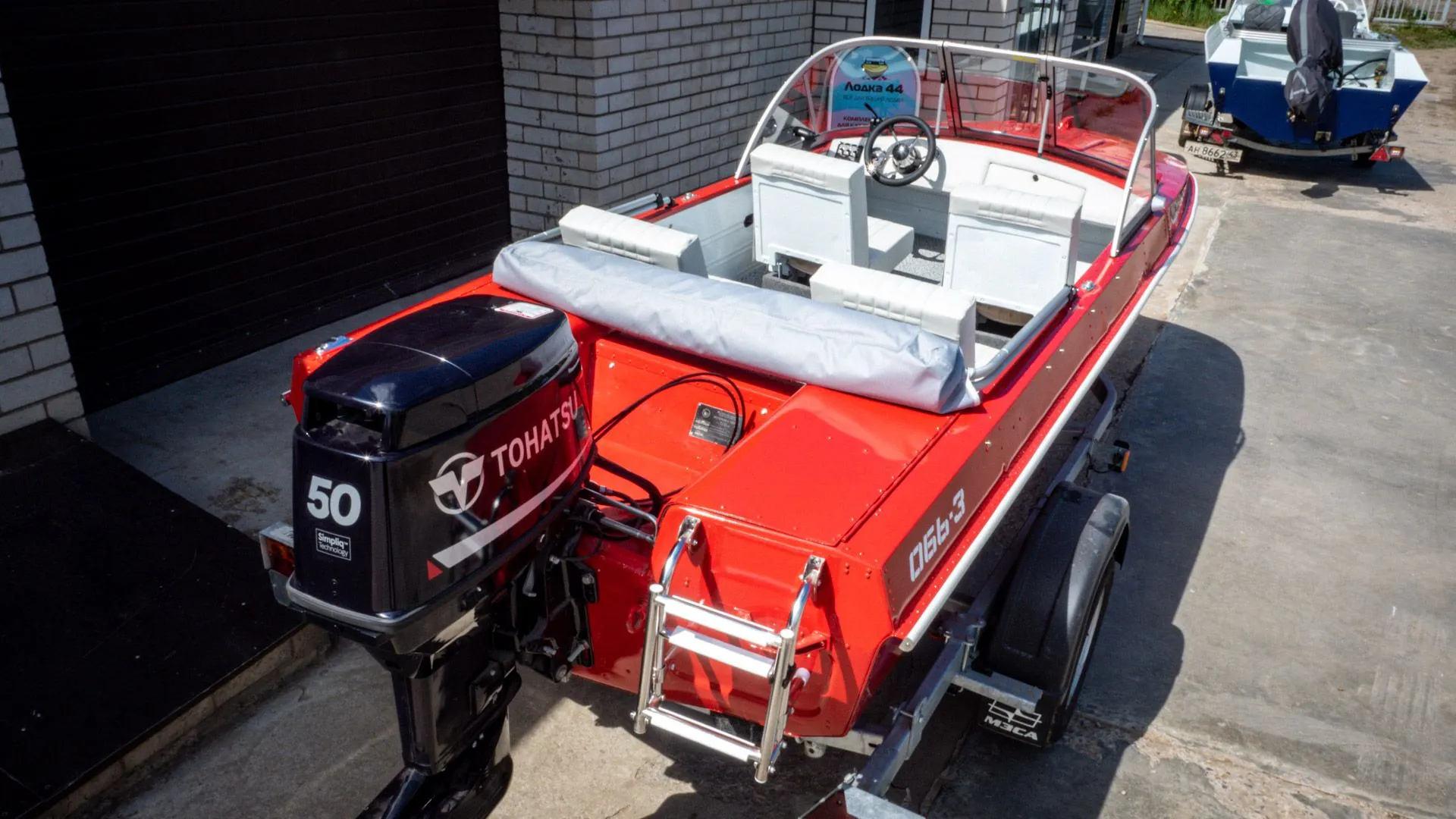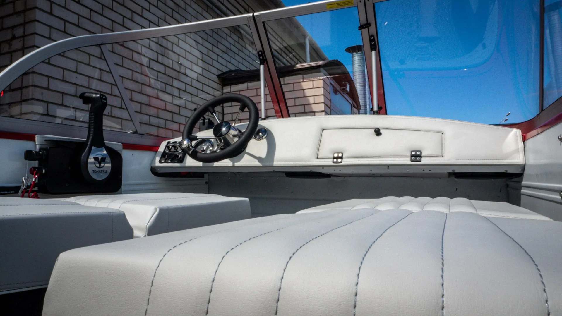 На данную лодку так же был установлен подвесной лодочный мотор Тохатсу50, рулевое и дистанционное управление. Базовая электропроводка и приборы контроля движения.