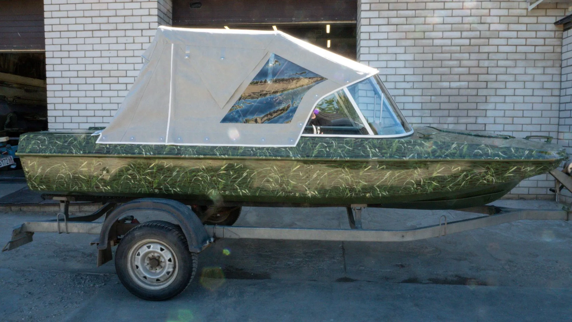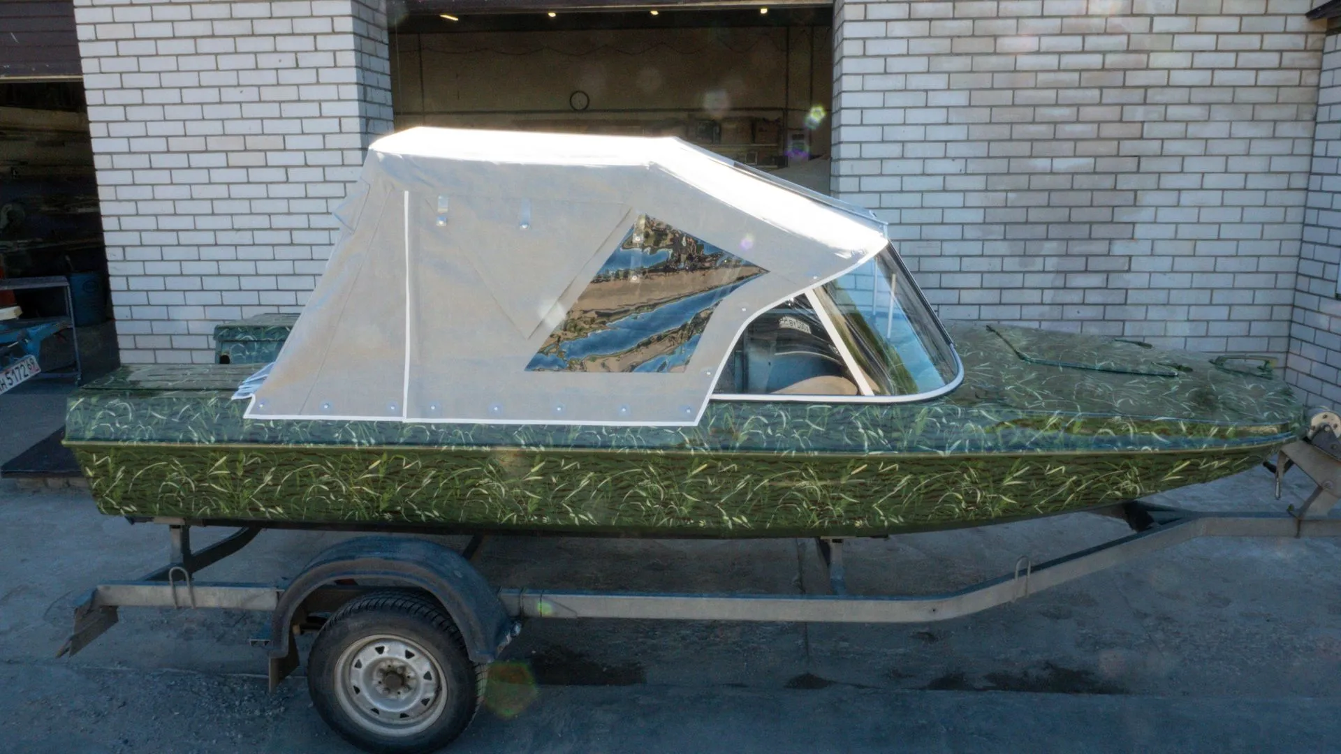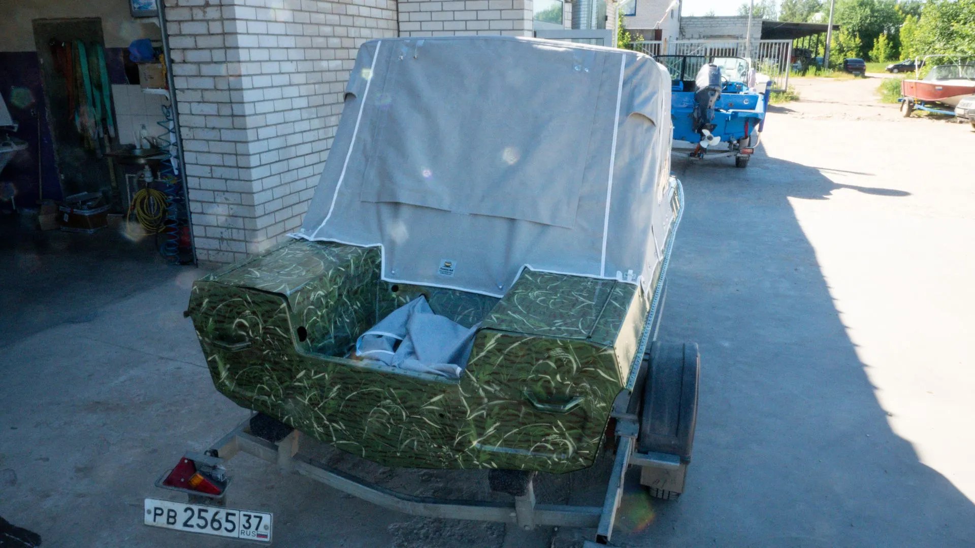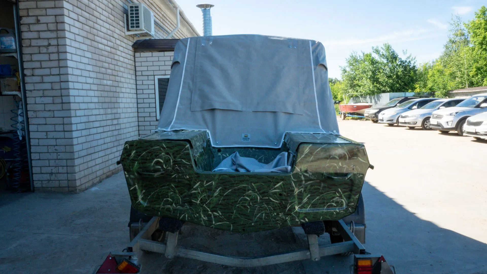 Мы подготовили корпус и переместили его в покрасочную камеру, где лодка была окрашена в один из самых популярных вариантов - камуфляж «камыш».