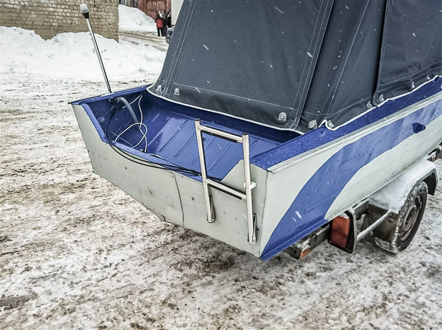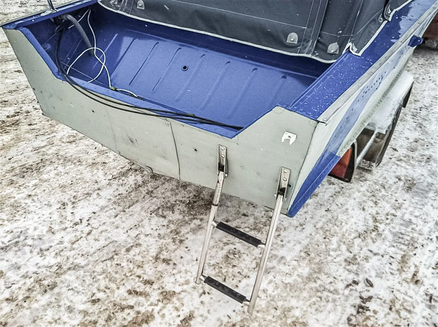 Специалистами компании "Лодка 44" была покрашена палуба, а также нанесена на корпус полоса синего цвета.