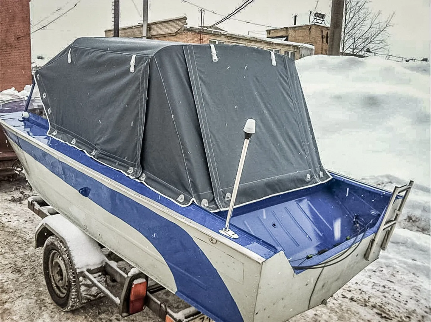 Владелец приобрел корпус и самостоятельно выполнил часть трудоёмких работ. Так, была осуществлена покраска и замена остекления у плавсредства.