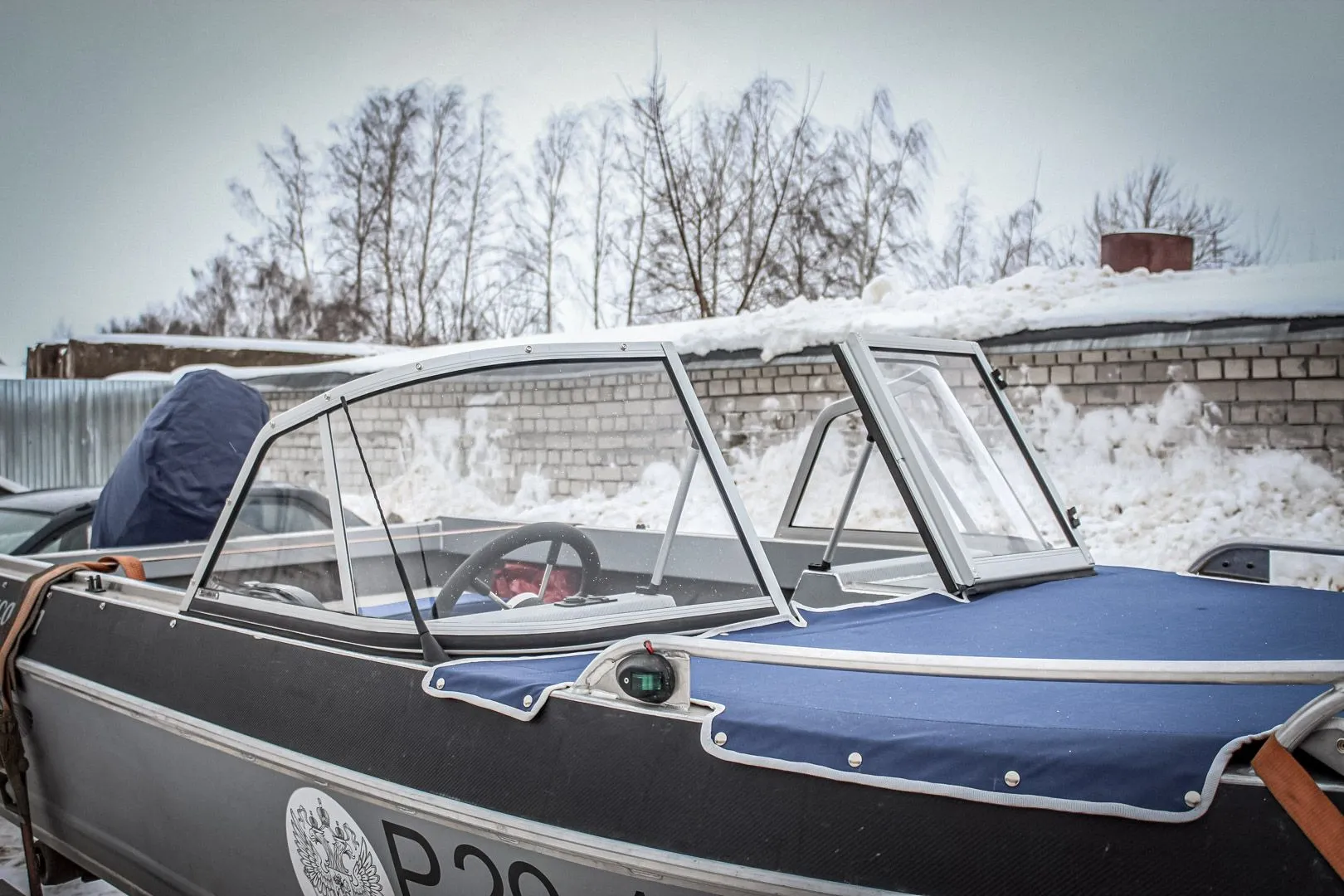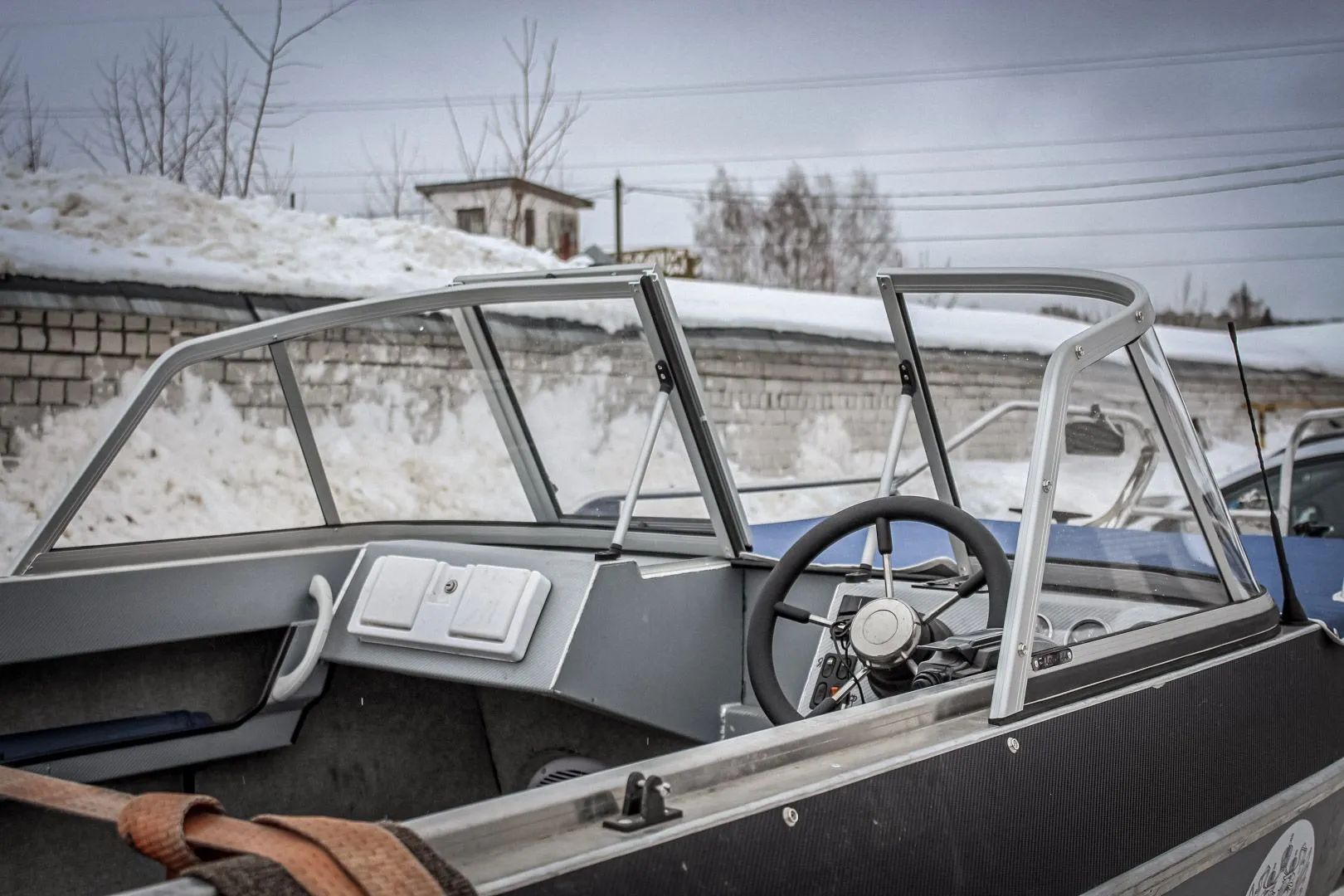 —(2016) Волжанка 47 Фиш Ветровое стекло Элит, тент ходовой и стояночный